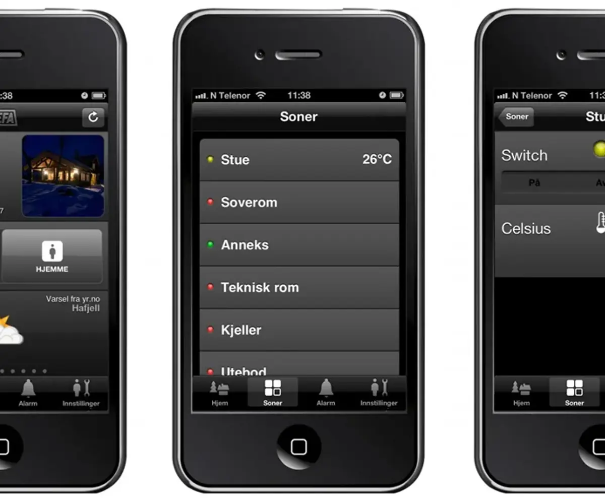 Unngå frosne rør og vannskader: Hold øye med temperaturen på hytta og sett opp varmen for å beskytte rørene. Systemet sier fra når frosten kommer.